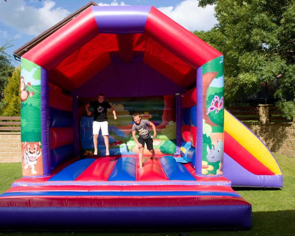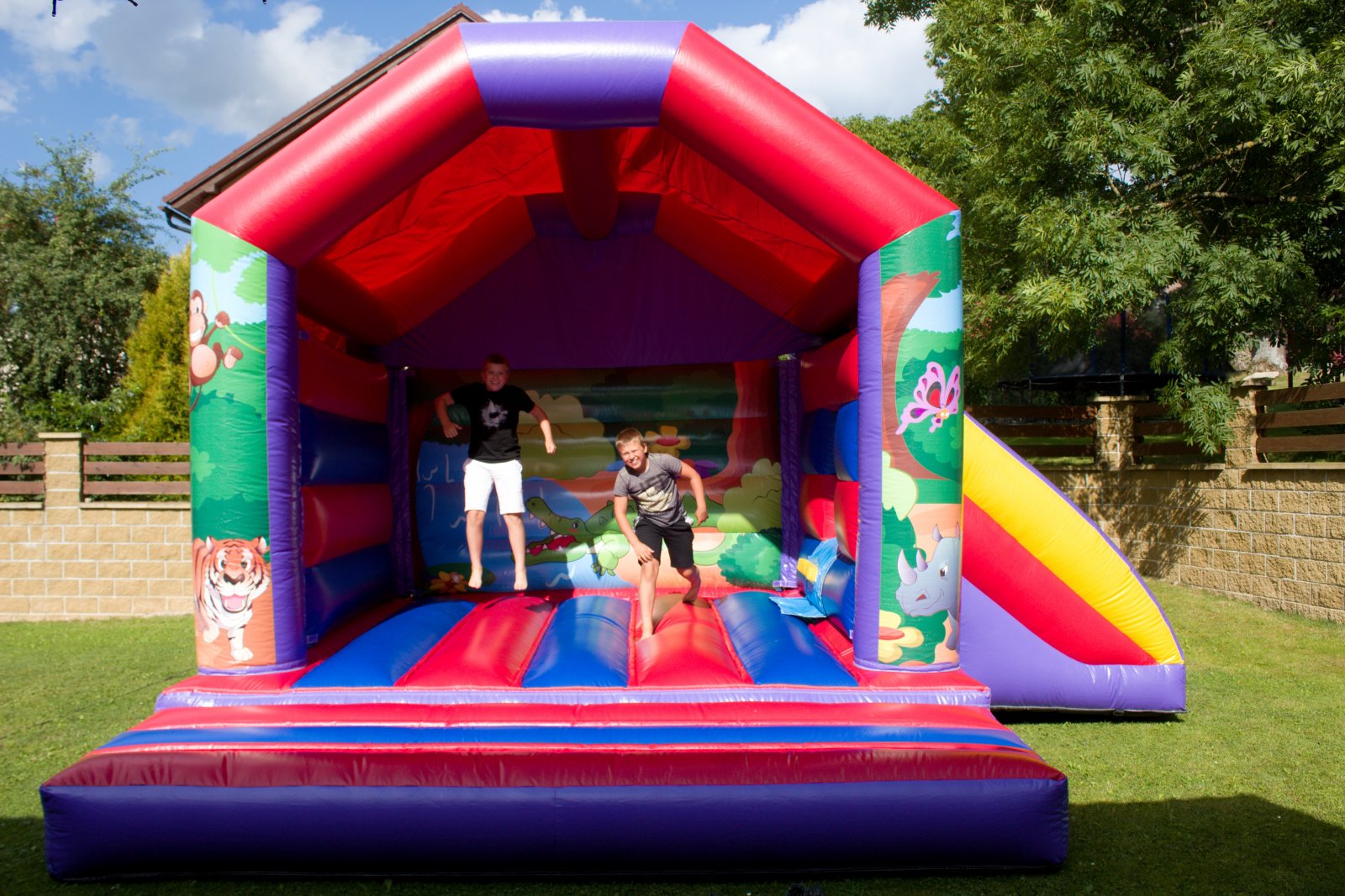 Skákací hrad je vyroben z pevných, kvalitních a odolných materiálů. Je široký 496 cm, dlouhý 642 cm a vysoký 380 cm. K hradu dostanete relativně tichý ventilátor, takže ho můžete použít i uvnitř.