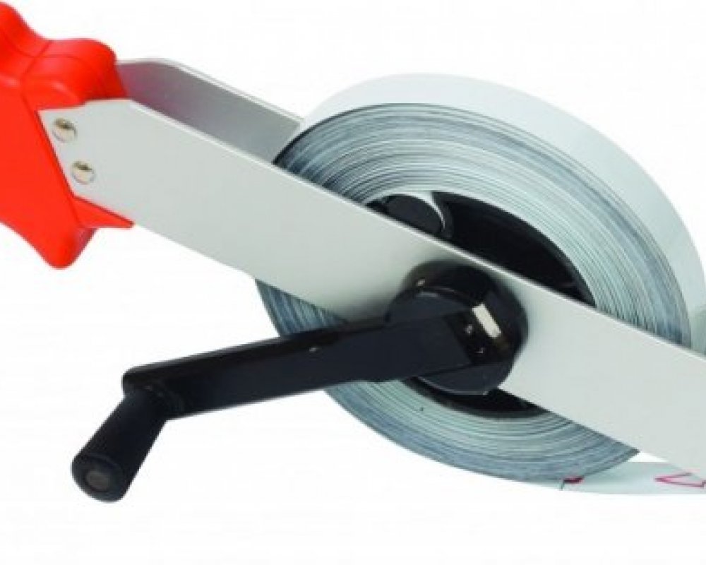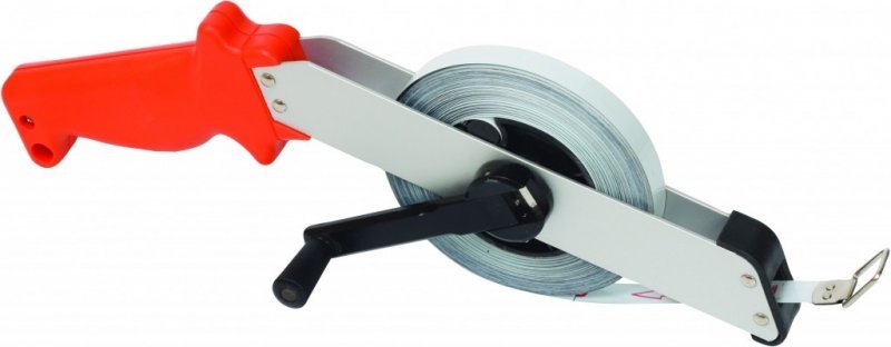 Kvalitní ocelové pásmo délka 50m kalená páska s očkem otevřené provedení - kovové vedení s ergonomickou rukojetí z ABS plastu, sklopná navíjecí ručka