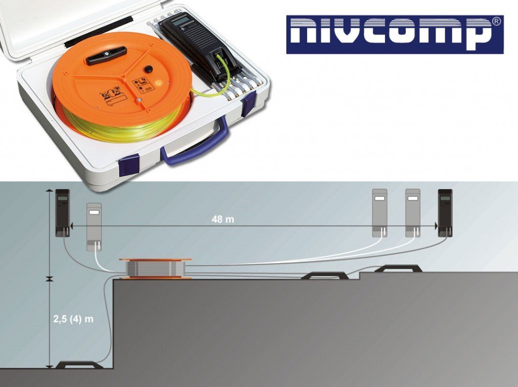 Vodováha je vysoce přesná v celém rozsahu 48m, měří s přesností 1mm.