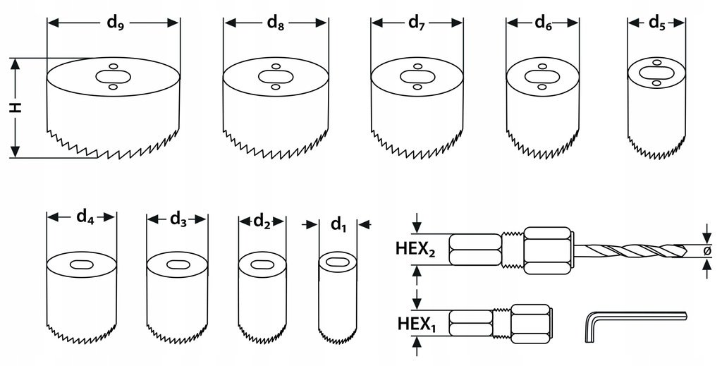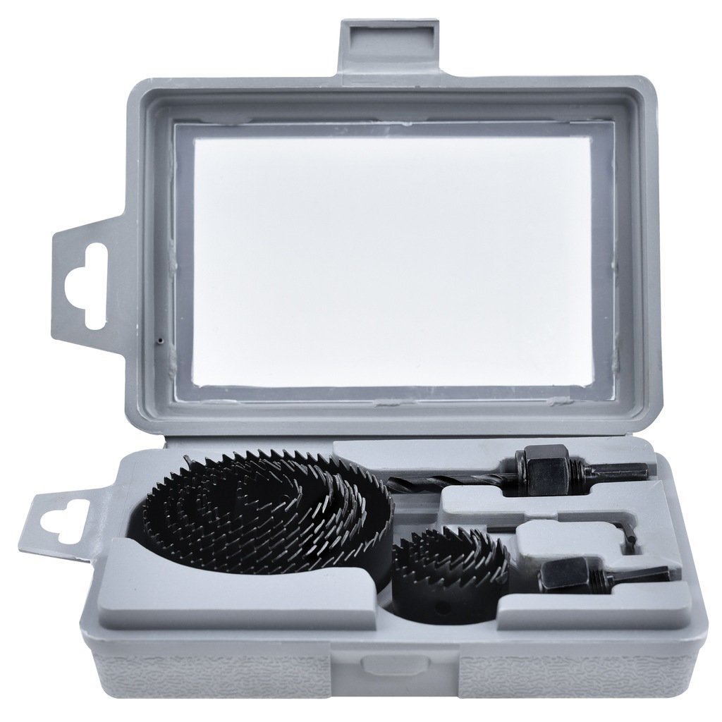 Sada děrovaček je sada nástrojů pro vrtání otvorů do dřeva, sádrokartonu a plastů o průměru 19 až 82 milimetrů. Sada skládá z 9 děrovaček různých průměrů, 2 držáků děrovaček s vodícím vrtákem a imbusového klíče umístěného v praktickém pouzdře, takže je můžete snadno přenášet a skladovat. Otvory jsou vyrobeny z vysoce kvalitní tvrzené oceli, což zajišťuje jejich trvanlivost a odolnost proti opotřebení. Každá děrovačka má speciální, ostře zakončený konec, který usnadňuje její proříznutí materiálu, a pohodlnou rukojeť, která zajišťuje pevné uchopení a kontrolu při práci. S touto sadou můžete vytvořit otvory různých průměrů ve dřevě a plastech, což je nezbytné při montáži nábytku, elektrických instalacích, dřevěných konstrukcích a mnoha dalších aplikacích.