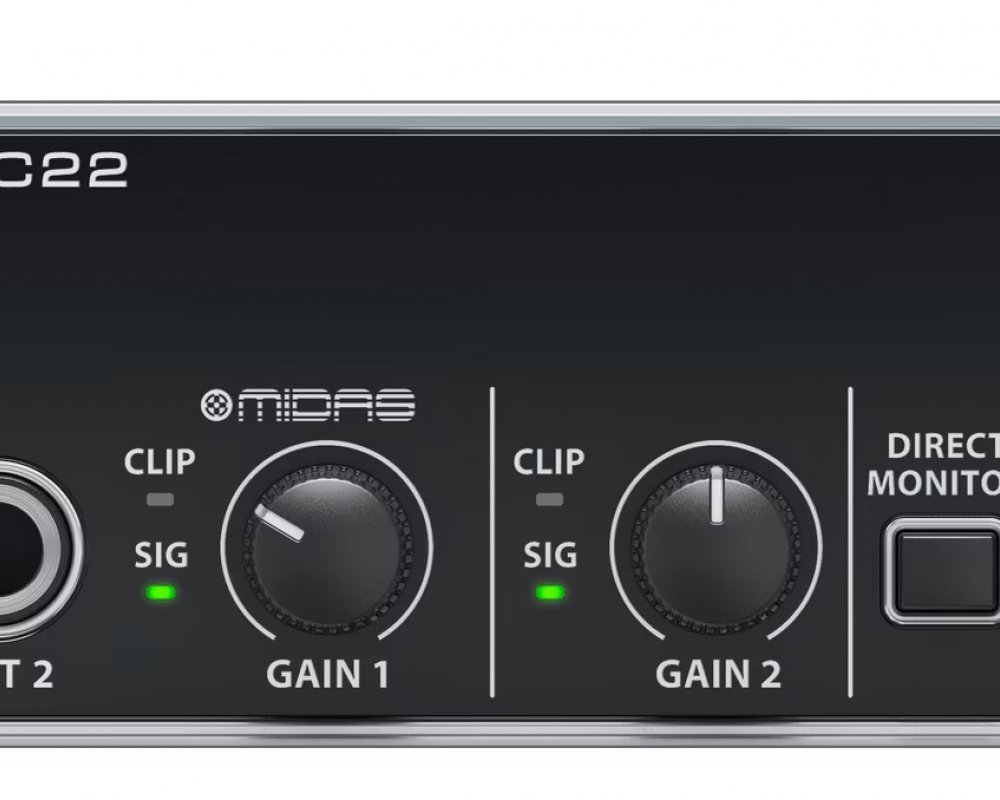 Zvuková karta je kompatibilní s většinou DAW softwarů nebo pluginů či virtuálními nástroji. Na přední části naleznete kombinovaný vstup pro mikrofon disponující kvalitním mikrofonním preampem od MIDAS s velkým dynamickým rozsahem a vstup pro kytaru, baskytaru, nebo jiný elektricky zesílený nástroj. Každý kanál obsahuje ovladač hlasitosti a LED diody CLIP/SIC pro maximální kontrolu. Sluchátkový výstup vám potom zprostředkuje detailní monitoring nebo noční recording session. Zadní panel skrývá stereo výstupy pro studiové monitory, spínač fantomového napájení a USB port pro připojení do PC nebo laptopu.